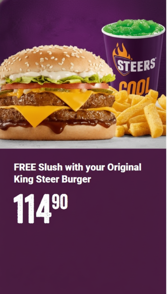 Unlock the best Steers takeaway specials on all your favourite Flame-Grilled meals with the Steers app. With easy Steers online ordering, you can tap, order, and enjoy exclusive Steers app deals perfect for sharing Flame-Grilled burgers and meal deals with your partner, friends, or the whole family.